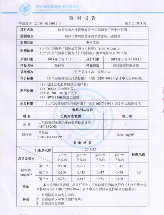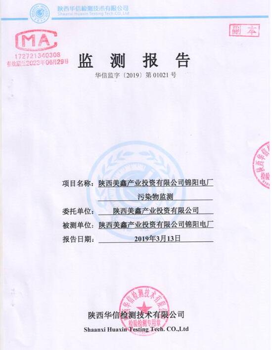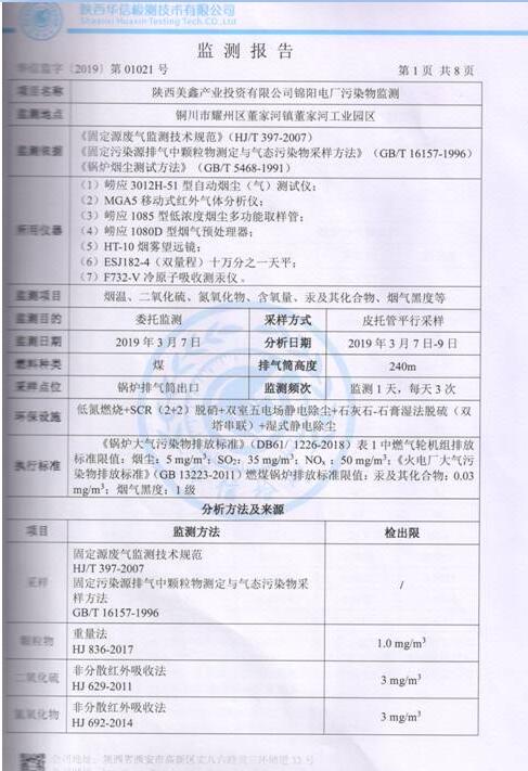 陜西美鑫產(chǎn)業(yè)投資有限公司錦陽電廠2×350MW機(jī)組2019年1季度自行監(jiān)測(cè)如下: