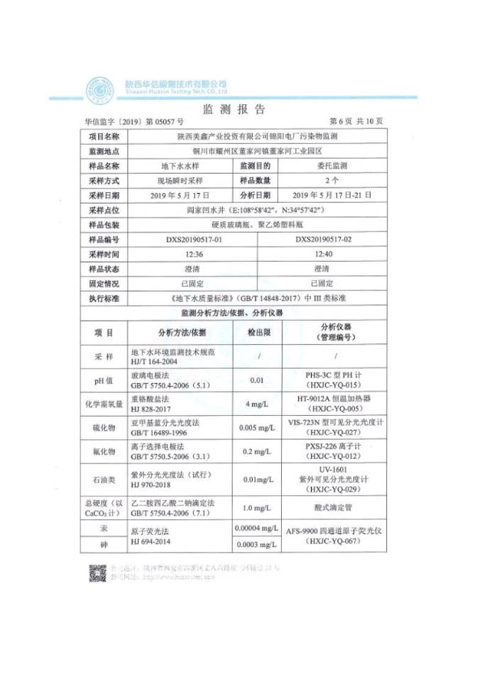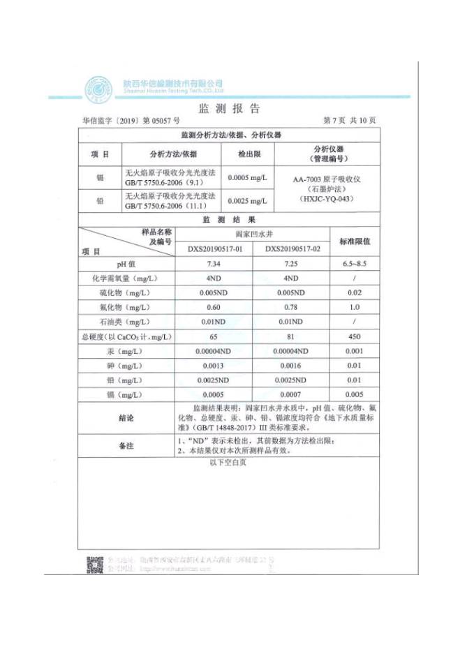 (1)監(jiān)測指標(biāo):pH值、化學(xué)需氧量、硫化物、氟化物、石油類、總硬度、總汞、總砷、總鉛、總鎘。