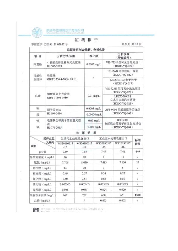 (1)監(jiān)測指標(biāo):pH值、化學(xué)需氧量、氨氮、懸浮物、總磷、石油類、氟化物、硫化物、揮發(fā)酚、溶解性總固體(全鹽量)。