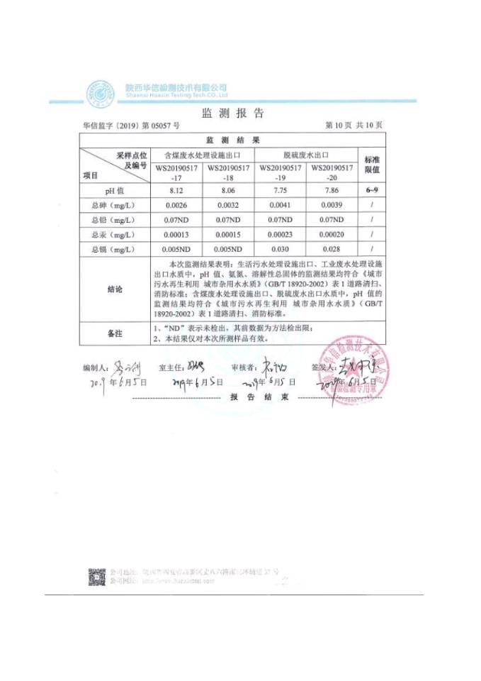 (2)監(jiān)測點(diǎn)位:煤水設(shè)施排放口。