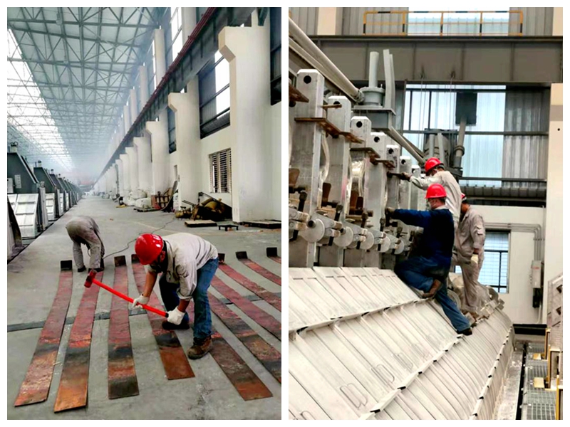 驕陽似火,熱浪如涌,持續(xù)高溫的日子肆虐著。在這樣的“桑拿天”里,鋁鎂合金檢修車間職工戰(zhàn)高溫、斗酷暑,從大局出發(fā),任勞任怨,用辛勤的汗水譜寫出一曲奉獻(xiàn)者之歌。 7月24日以來,為減輕電解生產(chǎn)壓力,齊心協(xié)力完成第二階段電解槽啟動(dòng)投運(yùn)任務(wù),檢修車間在自身檢修任務(wù)繁重、人員緊張的情況下,主動(dòng)請(qǐng)纓,動(dòng)員發(fā)動(dòng)內(nèi)部力量,主動(dòng)承擔(dān)起電解車間分流器、軟連接的安裝任務(wù)。 7月24日當(dāng)天,檢修車間立刻行動(dòng)起來。車間主任鄭云峰主持召開動(dòng)員大會(huì),號(hào)召車間全體職工凝聚力量,克服一切困難,以飽滿的工作熱情投入到電解槽啟動(dòng)投運(yùn)攻堅(jiān)戰(zhàn)中。當(dāng)天晚上,通過抽調(diào)加班方式,安裝人員按時(shí)上崗。 七月流火,熱浪滾滾,但檢修車間職工的工作熱情比氣溫還高。一個(gè)軟連接重達(dá)50多斤,一個(gè)人扛上肩,而后爬上幾米高的電解槽安裝,難度可想而知!問題不止于此,每個(gè)電解槽需要安裝48個(gè)軟連接,每安裝一個(gè)電解槽,這樣的動(dòng)作就要重復(fù)48次。汗水不停地流下來,很快就濕透了工裝。為確保工作進(jìn)度、減輕工作強(qiáng)度,安裝采取分組方式,輪番上陣。職工們放棄雙休日,加班加點(diǎn)工作。輕度中暑時(shí)常發(fā)生,一支藿香正氣水下肚后又沖了上去。揮汗如雨的職工,用實(shí)際行動(dòng)詮釋著美鑫職工愛崗敬業(yè)的錚錚誓言,用汗水共譜努力、團(tuán)結(jié)、共戰(zhàn)高溫的主旋律。