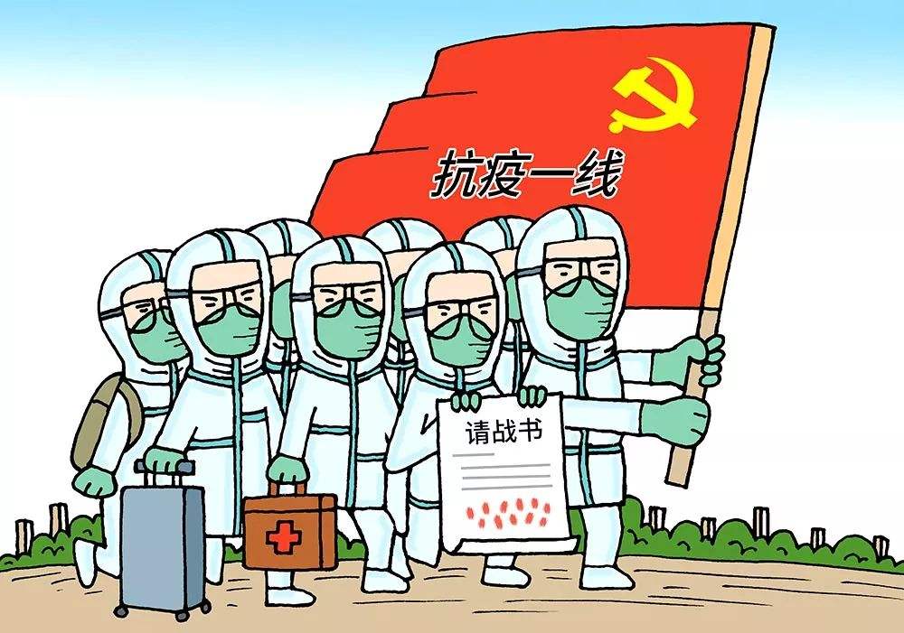 十四億國人的禁足 關(guān)卡的重重設(shè)立 醫(yī)院、高速路口、社區(qū)門口 每一個(gè)防疫檢查點(diǎn) 都有一面鮮紅的旗幟 上面有一個(gè)醒目的標(biāo)志 那就是鐮刀與斧頭 在防疫一線隨風(fēng)飛舞 黨員的身影隨處可見 他們不畏嚴(yán)寒 不畏新冠狀病毒侵襲 他們不曾忘記自己在黨旗前的誓言 在自己的崗位上為祖國 為生養(yǎng)自己的土地 守護(hù)一方平安 在黨旗下忙碌著 無數(shù)無名的抗疫英雄 他們?yōu)榱俗鎳?他們?yōu)榱税傩瞻部?o:p> 牢記使命不忘初心 離開了自己溫暖的小家 告別了親人 在崗位上默默無私的工作 我不曾記住他們的名字 我能看到就是鮮艷的黨旗 在祖國的藍(lán)天下飄揚(yáng)