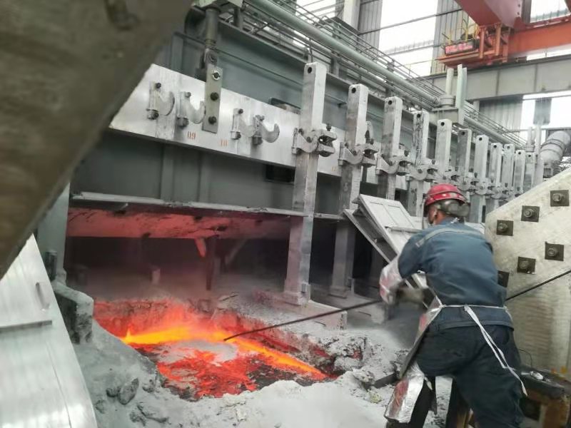一刻也閑不下來(lái)的費(fèi)篩平,從接班到下班你總能在車間看到他忙忙碌碌的身影,每天一到崗,第一件事就是檢查自己負(fù)責(zé)的電解槽,查看冒火、粘錘頭等情況,及時(shí)清理碳渣、觀察下料量。一圈下來(lái)衣服的后背早已被汗水印出幾朵白色的云彩,汗水夾雜著灰粉順著臉頰淌下,但他從未說(shuō)過(guò)一個(gè)累字?柿,就匆忙趕回休息室倒杯水喝上兩口。累了,蹲在墻邊休息兩分鐘,之后又投入到緊張的收邊整形、打覆蓋料等工作之中。無(wú)論酷暑還是寒冬,衣服總是濕了又干,干了又濕,白白的云朵伴著汗水的味道,他卻戲稱這才是有色有味的勞動(dòng)者。家里人時(shí)常關(guān)心的問(wèn)道:“最近工作怎么樣?累不累?”他總是憨厚的笑著說(shuō)“好著呢,其實(shí)累點(diǎn)不要緊,在這里我能看到希望。”