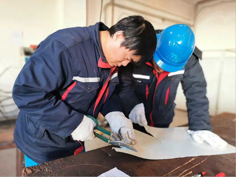 “紙上得來終覺淺,絕知此事要躬行”。大家從下料開始上手,劃線、裁剪、錘邊、咬合、鉸孔等每一道工序環(huán)環(huán)相扣,絲毫馬虎不得,尤其錘邊時(shí)力度要拿捏適當(dāng),否則事倍功半,天氣雖冷,但大家學(xué)習(xí)熱情高漲,長(zhǎng)時(shí)間彎腰弓背,有些人干得滿頭大汗,脫去棉服輕裝上陣。所謂“萬能的鉗工”不是簡(jiǎn)單的磨和銼,需要體力也需要耐心,反復(fù)測(cè)量驗(yàn)證,否則就會(huì)報(bào)廢。大家通體合作,相互切磋,及時(shí)總結(jié)經(jīng)驗(yàn)教訓(xùn),揚(yáng)長(zhǎng)避短,最終都按時(shí)完成了任務(wù),盡管有人的手掌都磨出了泡,但看到成品那一刻,都很欣慰。