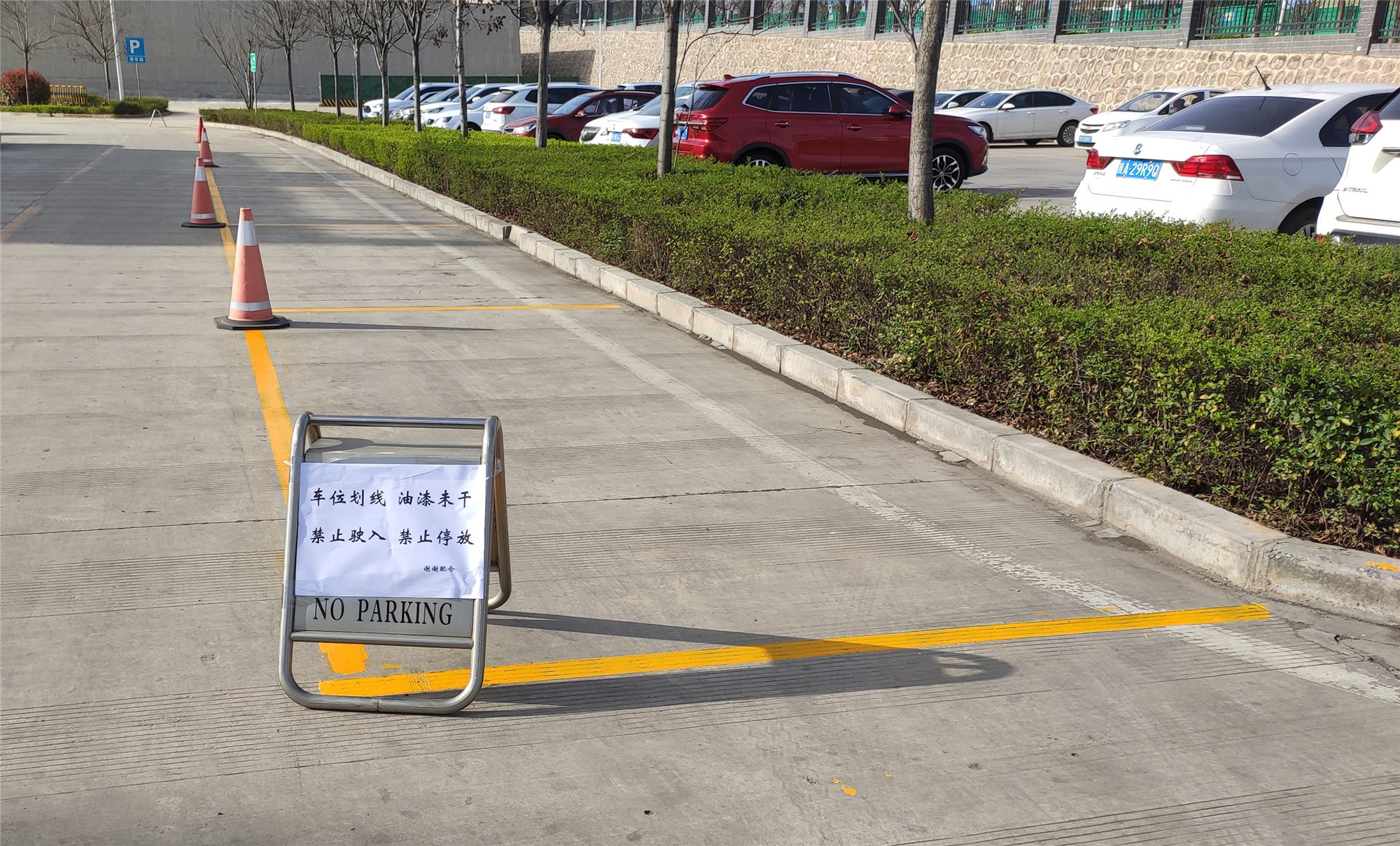 為避免油漆未干之前車輛壓毀新劃定車位,提前在停車區(qū)域前做好警示標志,滿足停放條件后對全廠開放。后期,分公司團總支還將對雨水收集池周邊區(qū)域進行車位畫線,徹底解決廣大職工停車難題。