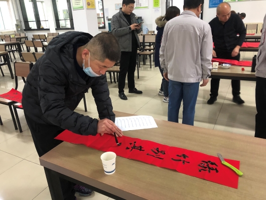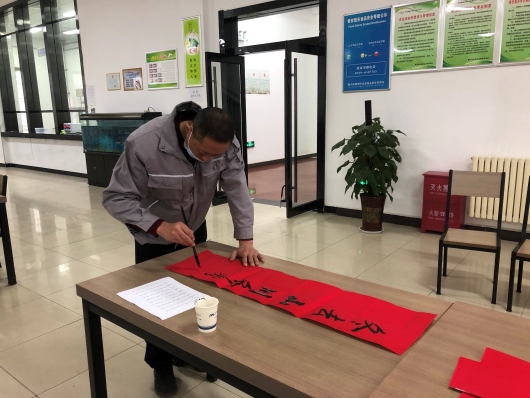 古往今來,春節(jié)貼春聯(lián),是對新年的憧憬與盼望,更對未來的向往與期許。此次活動中,書法愛好者們筆法秀逸、行云流水,一展自我風(fēng)采。一幅幅紅紅的春聯(lián),對仗工整、清新秀麗;一張張喜慶的福字,筆勢雄奇、蒼勁有力。吸引了眾多聞訊而來的職工,大家一邊欣賞著已書寫完成的對聯(lián),一邊挑選著自己心儀的對聯(lián)內(nèi)容。有的職工還邀請中意的“書法大師”為自己量身定制一副獨一無二的春聯(lián)內(nèi)容,現(xiàn)場氣氛歡樂祥和。