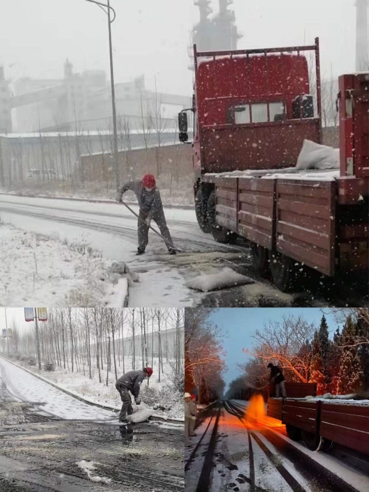 雪已經(jīng)斷斷續(xù)續(xù)下了三天,天氣預(yù)報顯示接下來還將持續(xù)數(shù)天,工藝車隊(duì)黨支部號召車間黨員、積極分子、班組長持續(xù)堅(jiān)守一線,及時清理積雪。目前,在各個坡道防滑現(xiàn)場、道路運(yùn)輸彎道處、叉車倒運(yùn)鋁錠現(xiàn)場,隨處可見堅(jiān)守的這群人,他們身先士卒、率先垂范,用行動全力保障公司職工出行安全和生產(chǎn)安全。