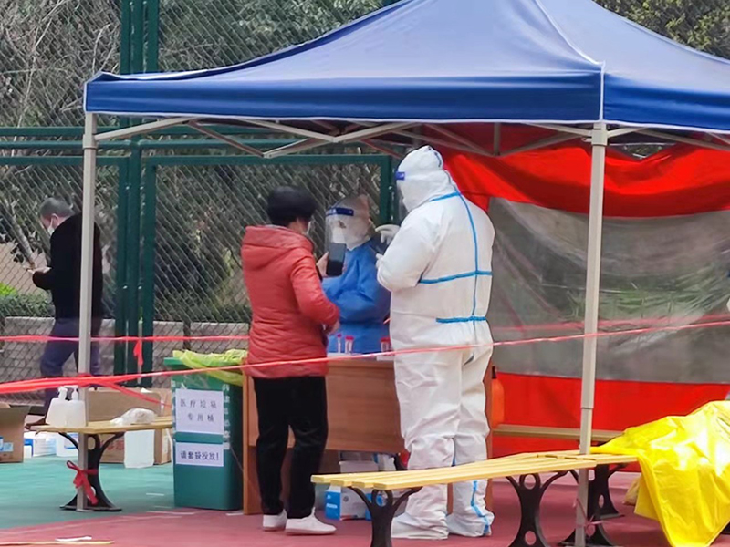 忙過了整晚 廣場上 檢測的人 換了幾圈圈 大白還在嚴(yán)謹(jǐn)?shù)?o:p> 掃碼、取檢
