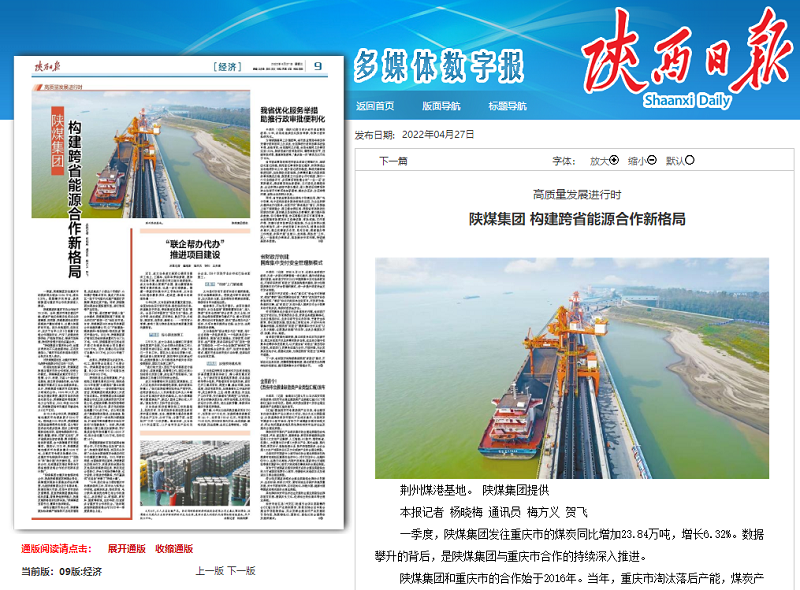 高質(zhì)量發(fā)展進(jìn)行時(shí)陜煤集團(tuán) 構(gòu)建跨省能源合作新格局 一季度,陜煤集團(tuán)發(fā)往重慶市的煤炭同比增加23.84萬噸,增長6.32%。數(shù)據(jù)攀升的背后,是陜煤集團(tuán)與重慶市合作的持續(xù)深入推進(jìn)。 陜煤集團(tuán)和重慶市的合作始于2016年。當(dāng)年,重慶市淘汰落后產(chǎn)能,煤炭產(chǎn)能無法滿足經(jīng)濟(jì)社會發(fā)展需要,而同期,陜煤集團(tuán)的優(yōu)質(zhì)環(huán)保煤炭產(chǎn)量快速增長,正著力拓展新的市場。因?yàn)閼?zhàn)略趨同、優(yōu)勢互補(bǔ),雙方于當(dāng)年12月9日簽署了戰(zhàn)略合作框架協(xié)議,開啟了在煤炭資源供給、產(chǎn)能指標(biāo)轉(zhuǎn)讓、煤炭市場拓展、物流投資等方面的多贏合作。 “陜煤集團(tuán)與重慶的合作,給重慶帶來的不只是能源供給,還有發(fā)展信心。”重慶市經(jīng)濟(jì)和信息化委員會相關(guān)負(fù)責(zé)人表示。 對陜煤集團(tuán)而言,與重慶市攜手,也是跨省能源合作邁出的一大步。 利用兩地地緣優(yōu)勢,陜煤集團(tuán)拓展與重慶市的合作領(lǐng)域,創(chuàng)新合作模式。陜煤集團(tuán)在重慶市設(shè)立了珞璜、合川、涪陵、萬盛4個(gè)煤炭儲運(yùn)基地,建立常態(tài)儲備機(jī)制,全力保障重慶市重點(diǎn)工業(yè)企業(yè)煤炭供給。此外,陜煤集團(tuán)與重慶市還拓展電力領(lǐng)域的合作。2020年12月,陜西省發(fā)展改革委、重慶市經(jīng)濟(jì)和信息化委員會、陜煤集團(tuán)共同簽署了電力合作協(xié)議,2021年至2023年間,陜煤集團(tuán)每年向重慶市輸送電力6億千瓦時(shí)。 自2016年合作以來,陜煤集團(tuán)銷往重慶市的煤炭累計(jì)5300萬噸。特別是2021年以來,陜煤集團(tuán)克服因疫情帶來的資源、運(yùn)力等方面存在的諸多困難,兩次上調(diào)年度煤炭運(yùn)銷目標(biāo),堅(jiān)持電煤保供計(jì)劃、需求、配置、裝車、對接“五優(yōu)先”,并開通煤炭經(jīng)浩吉鐵路、荊州煤港入渝的新通道,全力保障重慶市用煤需求。據(jù)統(tǒng)計(jì),2021年,陜煤集團(tuán)銷往重慶市的煤炭量達(dá)1589萬噸,占重慶市電煤采購量的52%,在重慶市電煤保供中起到了“壓艙石”和“穩(wěn)價(jià)器”的關(guān)鍵作用。雙方的合作,也被國家發(fā)展改革委當(dāng)作跨省能源戰(zhàn)略合作的示范樣本進(jìn)行推廣。 “陜煤集團(tuán)與重慶的能源戰(zhàn)略合作,既是陜煤集團(tuán)發(fā)揮國企責(zé)任,保障重慶煤炭長期穩(wěn)定供給的需要,也是陜煤集團(tuán)立足于長期戰(zhàn)略,拓展西南大市場、布局中部市場的發(fā)展需要,更是陜煤集團(tuán)提高供給體系質(zhì)量,增強(qiáng)跨省保供能力,構(gòu)建發(fā)展新格局的創(chuàng)新實(shí)踐。”陜煤集團(tuán)黨委書記、董事長楊照乾說。 借助與重慶市的合作,陜煤集團(tuán)加快破解產(chǎn)能指標(biāo)不足的發(fā)展局限,先后建成了小保當(dāng)二號煤礦、山陽煤礦等重點(diǎn)項(xiàng)目,建成了陜北地區(qū)一批千萬噸現(xiàn)代化高產(chǎn)高效礦井集群,釋放優(yōu)質(zhì)產(chǎn)能。同時(shí),陜煤集團(tuán)加速在全國拓展市場,進(jìn)行物流等產(chǎn)業(yè)布局。 據(jù)了解,通過復(fù)制“陜煤入渝”合作模式,陜煤集團(tuán)拓展了湖南、湖北和江西“兩湖一江”地區(qū)的市場。目前,陜煤集團(tuán)與江西省投資集團(tuán)合作組建陜贛公司,以“產(chǎn)能置換+煤炭保供+常態(tài)儲煤+物流貿(mào)易”模式開展合作。2021年,陜煤集團(tuán)累計(jì)銷往江西省的煤炭量約為647.24萬噸。今年,陜煤集團(tuán)與江西省用戶簽訂的煤炭購銷合同總量約1082萬噸。其中,陜贛公司合同簽訂總量為392萬噸,比2021年翻了一番。 在湖北,陜煤集團(tuán)與多家發(fā)電、化工、建材等企業(yè)建立了長期合作。陜煤集團(tuán)銷往湖北省的煤炭量,由2020年的700萬噸增加至2021年的963萬噸。 陜西和湖北在資源稟賦、產(chǎn)業(yè)結(jié)構(gòu)上有著很強(qiáng)的互補(bǔ)性,特別是2019年我國“北煤南運(yùn)”最長的煤運(yùn)戰(zhàn)略大通道——浩吉鐵路開通運(yùn)營后,陜煤集團(tuán)的煤炭最快1天便可到達(dá)湖北。陜煤集團(tuán)與湖北能源集團(tuán)合作成立湖北煤炭投資開發(fā)有限公司,在煤炭供需、物流投資等領(lǐng)域開展了多項(xiàng)合作,累計(jì)完成煤炭經(jīng)銷量2700多萬噸。該公司還建成了集煤炭物流配送、應(yīng)急儲備、配煤加工、交易于一體的荊州煤港基地,打造面向鄂湘贛等華中地區(qū)市場的“內(nèi)陸秦皇島”。目前,荊州煤港基地二期工程正加緊推進(jìn),預(yù)計(jì)建成后每年物流量可達(dá)14000萬噸、碼頭吞吐量7100萬噸,總泊位數(shù)14個(gè)。 陜煤集團(tuán)提前布局實(shí)施跨省能源合作,不僅助推企業(yè)加速“走出去”,構(gòu)建發(fā)展新格局,而且充分發(fā)揮了企業(yè)在全國能源安全穩(wěn)定供應(yīng)中的重要支撐作用。2021年第四季度,全國能源供應(yīng)緊張,陜煤集團(tuán)主動擔(dān)當(dāng)作為,積極承擔(dān)全國多地發(fā)電供熱用煤保供任務(wù),率先完成合同簽訂,并全力克服供需失衡、運(yùn)力緊張、價(jià)格波動等影響,為打贏保供“攻堅(jiān)戰(zhàn)”貢獻(xiàn)了“陜煤力量”。 “今年,我們將全力做好重慶市的煤炭保供