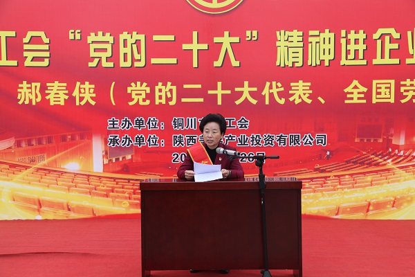 |   10月26日,公司邀請(qǐng)黨的二十大代表、全國勞模、銅川市耀州區(qū)石柱鎮(zhèn)西古莊村黨支部書記、村委會(huì)主任郝春俠進(jìn)企業(yè)宣講黨的二十大精神。   銅川市總工會(huì)相關(guān)負(fù)責(zé)人及公司領(lǐng)導(dǎo)出席會(huì)議,銅川市總工會(huì)機(jī)關(guān)、銘帝鋁業(yè)有限公司、陜西達(dá)美輪轂有限公司及公司黨員干部職工代表近600人參加此次會(huì)議。會(huì)議由公司黨委副書記李書平主持。   公司黨委書記、董事長高曉兵致辭,對(duì)銅川市總工會(huì)黨組書記、常務(wù)副主席何建平和郝春俠代表的到來表示熱烈的歡迎和衷心的感謝。他表示,黨的十八大以來,陜西美鑫公司始終堅(jiān)持以高質(zhì)量發(fā)展為主題,充分發(fā)揮國有企業(yè)在構(gòu)建“大循環(huán)、雙循環(huán)”發(fā)展新格局中應(yīng)有作用,積極踐行社會(huì)責(zé)任和企業(yè)擔(dān)當(dāng),為地方經(jīng)濟(jì)作出了積極貢獻(xiàn)。公司將倍加珍惜此次報(bào)告會(huì)帶來的高層次、高水平的實(shí)踐輔導(dǎo),以黨的二十大精神為指引,堅(jiān)決貫徹黨中央決策部署,擼起袖子加油干、風(fēng)雨無阻向前行,進(jìn)一步把循環(huán)經(jīng)濟(jì)產(chǎn)業(yè)鏈的藍(lán)圖繪就的更大更美好,以高質(zhì)量發(fā)展的實(shí)效來檢驗(yàn)學(xué)習(xí)成果。   “習(xí)近平總書記的講話,鏗鏘有力、振奮人心,如潮的掌聲一次又一次響起,讓人心潮澎湃、斗志昂揚(yáng)……”郝春俠分享思想收獲、傳遞飽滿熱情,這些真實(shí)感受和生動(dòng)實(shí)踐是最生動(dòng)、最有說服力的教科書,讓大家真真切切地接受了一次教育和洗禮。隨后,何建平通過對(duì)黨的二十大報(bào)告中的十五個(gè)部分內(nèi)容進(jìn)行分類歸納和系統(tǒng)分析,提綱挈領(lǐng)式地傳達(dá)了黨的二十大精神,脈絡(luò)清晰、分析透徹,為更好地學(xué)深悟透黨的二十大精神提供了有力指導(dǎo)和幫助。   李書平強(qiáng)調(diào),要以此次學(xué)習(xí)為契機(jī),進(jìn)一步提高思想認(rèn)識(shí)、立足工作實(shí)際,把黨的二十大精神轉(zhuǎn)化為具體舉措和實(shí)際行動(dòng),為全面建設(shè)社會(huì)主義現(xiàn)代化國家、全面推進(jìn)中華民族偉大復(fù)興作出應(yīng)有貢獻(xiàn)。要深刻認(rèn)識(shí)黨的二十大勝利召開的重大意義,深刻領(lǐng)會(huì)把握黨的二十大精神實(shí)質(zhì)和豐富內(nèi)涵。要深刻領(lǐng)會(huì)“五個(gè)牢牢把握”,推動(dòng)學(xué)習(xí)貫徹黨的二十大精神走深走實(shí),營造濃厚學(xué)習(xí)氛圍,迅速掀起學(xué)習(xí)熱潮。要立足崗位實(shí)際,把學(xué)習(xí)教育成果轉(zhuǎn)化為開新局、起好步的強(qiáng)大動(dòng)力,將黨的二十大部署要求落實(shí)到公司改革發(fā)展黨建各方面,一步一個(gè)腳印把黨的二十大精神付諸行動(dòng)、見之于成效。   會(huì)后,郝春俠還深入鋁鎂合金分公司鑄造車間與一線職工暢談黨的二十大精神學(xué)習(xí)貫徹感受體會(huì)。   公司職工紛紛表示,此次活動(dòng)不僅讓大家對(duì)黨的二十大精神有了較為全面系統(tǒng)的理解,也為大家深入學(xué)習(xí)黨的二十大精神提供了良好的方法指引。我們會(huì)把深入學(xué)習(xí)貫徹黨的二十大精神同學(xué)習(xí)貫徹習(xí)近平總書記來陜考察重要講話重要指示精神相結(jié)合,立足崗位、埋頭苦干,推動(dòng)各項(xiàng)工作穩(wěn)步向前,齊心協(xié)力奮力譜寫企業(yè)高質(zhì)量發(fā)展新跨越新篇章。  |