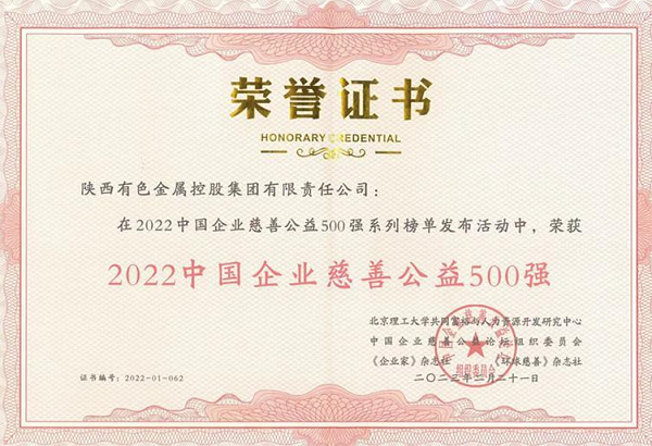 近日,2022中國(guó)企業(yè)慈善公益500強(qiáng)發(fā)布暨第六屆中國(guó)企業(yè)慈善公益論壇在重慶涪陵舉行,陜西有色金屬集團(tuán)榮獲“2022中國(guó)企業(yè)慈善公益500強(qiáng)”榮譽(yù)稱號(hào)。 近年來(lái),陜西有色金屬集團(tuán)在實(shí)現(xiàn)快速發(fā)展的同時(shí),不忘回饋社會(huì),在定點(diǎn)幫扶、產(chǎn)業(yè)幫扶、援藏、愛(ài)心捐贈(zèng)等領(lǐng)域,先后投入3.6億元鞏固拓展脫貧攻堅(jiān)成果同鄉(xiāng)村振興有效銜接,投入資金6478萬(wàn)元援助西藏阿里地區(qū),投入5000萬(wàn)元援建勉縣災(zāi)區(qū),向青海玉樹災(zāi)區(qū)和陜南災(zāi)區(qū)捐款3500萬(wàn)元,向省慈善協(xié)會(huì)社會(huì)扶貧網(wǎng)捐贈(zèng)400萬(wàn)元,向退役軍人關(guān)愛(ài)基金捐贈(zèng)200萬(wàn)元,助力第十四屆全國(guó)運(yùn)動(dòng)會(huì)組委會(huì)提供贊3000萬(wàn)元。為脫貧攻堅(jiān)成果鞏固與鄉(xiāng)村振興有效銜接、疫情防控、重大自然災(zāi)害、民生工程建設(shè)中做出了積極貢獻(xiàn)。 |