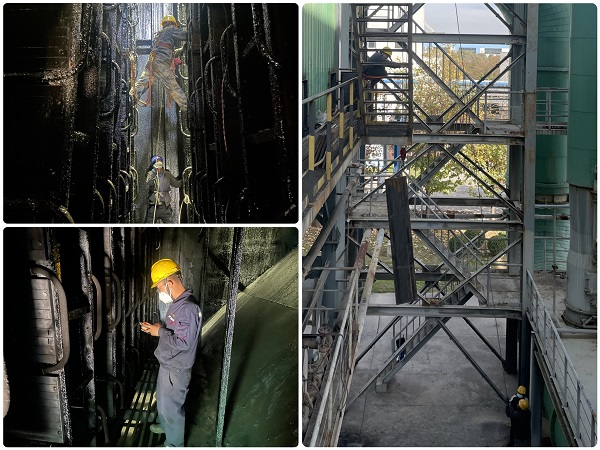 隨著生產(chǎn)工作持續(xù)進行,10月中下旬,陽極分公司焙燒車間2#煙氣凈化系統(tǒng)電捕焦油器陽極板已達到使用更換周期,為防止發(fā)生極板脫落、電暈閉塞等設(shè)備隱患,經(jīng)分公司同意,車間決定對2#系統(tǒng)電捕焦油器陽極板進行集中更換。 由于本次極板更換時間緊、任務(wù)重,分公司決定由焙燒車間和外包單位共同完成此項工作。車間結(jié)合生產(chǎn)實際,制定詳實的工作方案和應(yīng)急預(yù)案,協(xié)助辦理受限空間工作票,定時定點做好通風檢測等安全保障措施,安排專人認真進行現(xiàn)場監(jiān)護管理和檢查清理,確保極板更換作業(yè)安全高效完成。在此次更換作業(yè)中,焙燒車間總結(jié)以往工作經(jīng)驗,與外包單位協(xié)同配合,采用定、動滑輪組調(diào)運安裝陽極板,大幅提高了安全性能,減輕勞動強度,有效提升了工作效率。經(jīng)過二十余天緊張忙碌工作,近期,2#系統(tǒng)電捕焦油器陽極板全部更換完成,經(jīng)調(diào)試運行一切狀況良好。 此次極板更換工作,徹底消除了因極板腐蝕損壞、捕集吸附能力減弱所引起的系統(tǒng)電流降低、電暈閉塞、極板脫落等潛在安全隱患,保證了車間環(huán)保排放指標正常平穩(wěn),也為車間后期自主更換陽極板作業(yè)積累了寶貴經(jīng)驗。 |