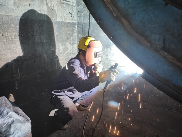 為了盡快查明原因、消除故障,車間立即組織檢修人員進行檢查搶修工作,經(jīng)細致排查,確定故障原因是埋刮板輸送機襯板耐磨層破損積料所致,作業(yè)人員隨即投入搶修工作。刮板輸送機位于地坑,空間狹窄、光線不足,給搶修工作帶來很大困難。車間專責及檢修人員協(xié)同合作,安全專責規(guī)范做好現(xiàn)場監(jiān)護,設(shè)備專責負責技術(shù)指導(dǎo)、督促跟進,解組人員認真清理積料、保證設(shè)備清潔,檢修人員根據(jù)現(xiàn)場情況切割鋼板、焊接處理磨損部位。隨著焊接打磨工作逐步完成,搶修工作圓滿結(jié)束。解組人員對設(shè)備進行調(diào)試,運行正常后投入生產(chǎn)。