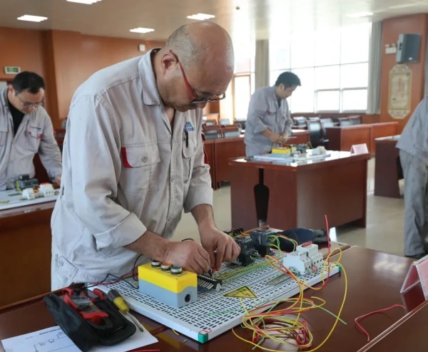 為深入貫徹落實“四賽四抓”勞動和技能競賽實施方案,公司于7月14日至15日在錦陽電廠舉辦2025年通用工種低壓電工崗位技能競賽。本次競賽以“建功‘十五五’·技能鑄輝煌”為主題,來自鋁鎂合金分公司、陽極分公司及錦陽電廠的61名選手同臺競技,通過“理論+實操”雙環(huán)節(jié)比拼,全面檢驗并提升職工技能水平。 競賽聚焦電動機(jī)連續(xù)運(yùn)轉(zhuǎn)與點(diǎn)動控制兩大工業(yè)自動化核心技術(shù),圍繞電氣原理圖識讀、安全規(guī)范等理論內(nèi)容及主回路接線、控制回路調(diào)試等實操技能展開。理論考核側(cè)重知識儲備與識圖能力,實操環(huán)節(jié)則要求選手在50分鐘內(nèi)完成復(fù)雜電路搭建與調(diào)試,精準(zhǔn)實現(xiàn)點(diǎn)動控制的瞬時響應(yīng)與連續(xù)運(yùn)轉(zhuǎn)的穩(wěn)定性控制。裁判組通過萬用表檢測、通電試運(yùn)行等標(biāo)準(zhǔn)化流程嚴(yán)格評分,確保競賽公平公正。 比賽現(xiàn)場,選手們展現(xiàn)扎實的專業(yè)功底與應(yīng)急處置能力,從接觸器線圈自鎖到按鈕開關(guān)互鎖,每一處接線均體現(xiàn)精益求精的工匠精神。公司黨委副書記、董事、工會主席楊亞科現(xiàn)場指導(dǎo),勉勵職工“以賽促學(xué)、以賽促練”,將競賽成果轉(zhuǎn)化為實際生產(chǎn)力。此次競賽不僅搭建了技藝交流平臺,更推動了公司“技能競賽-崗位練兵-技術(shù)創(chuàng)新”三位一體培養(yǎng)體系建設(shè),為培養(yǎng)高素質(zhì)產(chǎn)業(yè)工人隊伍、推動企業(yè)高質(zhì)量發(fā)展注入新動能。 |
