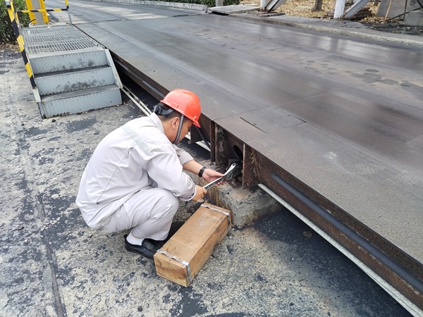 大宗原材料進(jìn)出場的精準(zhǔn)計(jì)量是企業(yè)生產(chǎn)平穩(wěn)運(yùn)行的關(guān)鍵環(huán)節(jié)。7月18日14時(shí)20分,質(zhì)檢計(jì)量中心接到緊急報(bào)告:陽極磅房磅秤突發(fā)傳感器傾斜、秤體移位故障,導(dǎo)致石油焦運(yùn)輸車輛無法正常過磅。時(shí)值高溫保供關(guān)鍵期,若不及時(shí)排除故障,將直接影響物料流轉(zhuǎn)效率,甚至延誤生產(chǎn)進(jìn)度。 靠前指揮強(qiáng)部署 爭分奪秒搶進(jìn)度 故障就是命令!中心領(lǐng)導(dǎo)班子迅速反應(yīng),第一時(shí)間趕赴現(xiàn)場指揮調(diào)度,并抽調(diào)技術(shù)骨干成立搶修小組。搶修人員冒著高溫,對磅秤進(jìn)行全面排查,迅速鎖定故障原因——由于頻繁使用、且持續(xù)高溫導(dǎo)致磅秤限位間隙縮小,車輛在磅秤上急停致使磅秤傳感器偏移、固定限位松動,造成磅秤部分限位失靈!氨仨氃2小時(shí)內(nèi)恢復(fù)運(yùn)行!”中心領(lǐng)導(dǎo)下達(dá)硬性指令。在安全管理人員的全程監(jiān)護(hù)下,搶修人員迅速制定搶修方案:利用千斤頂穩(wěn)固磅秤中心,多人協(xié)同撬動調(diào)整位移端,重新校準(zhǔn)傳感器并精準(zhǔn)調(diào)試數(shù)據(jù)。 協(xié)同奮戰(zhàn)保運(yùn)行 精準(zhǔn)調(diào)試穩(wěn)計(jì)量 經(jīng)過1小時(shí)20分鐘的緊張作業(yè),15時(shí)50分,磅秤計(jì)量數(shù)據(jù)恢復(fù)穩(wěn)定。經(jīng)反復(fù)校驗(yàn),誤差值嚴(yán)格控制在國家標(biāo)準(zhǔn)范圍內(nèi)。等候的運(yùn)輸車輛隨即有序過磅,生產(chǎn)恢復(fù)正常運(yùn)轉(zhuǎn)。此次搶修比原定預(yù)案提前40分鐘完成,最大限度地降低了故障對生產(chǎn)的影響。 |